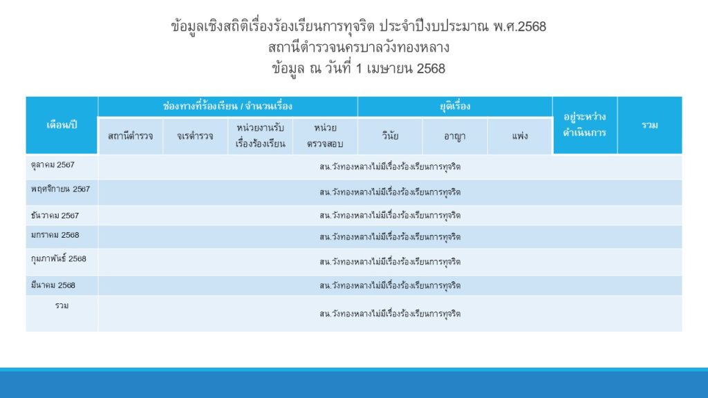 O17 ช่องทางการแจ้งเรื่องร้องเรียนการทุจริตและข้อมูลเชิงสถิติเรื่องร้องเรียนการทุจริต